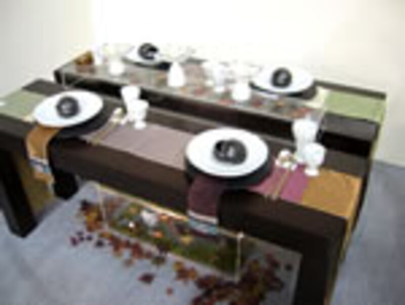 | 食卓を囲む対象者:陶磁器作家と大事な彼女の友人 季節:秋入り セッティングされる場所:ギャラリー |