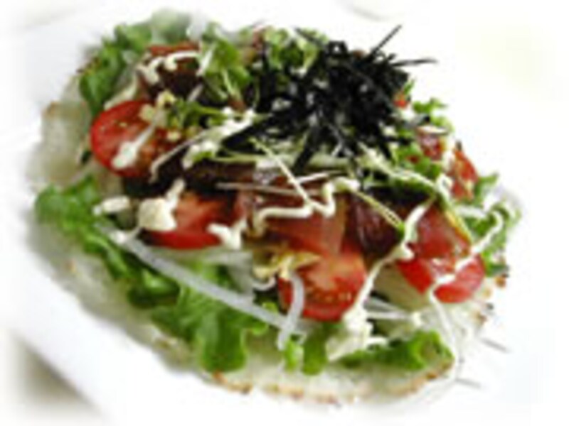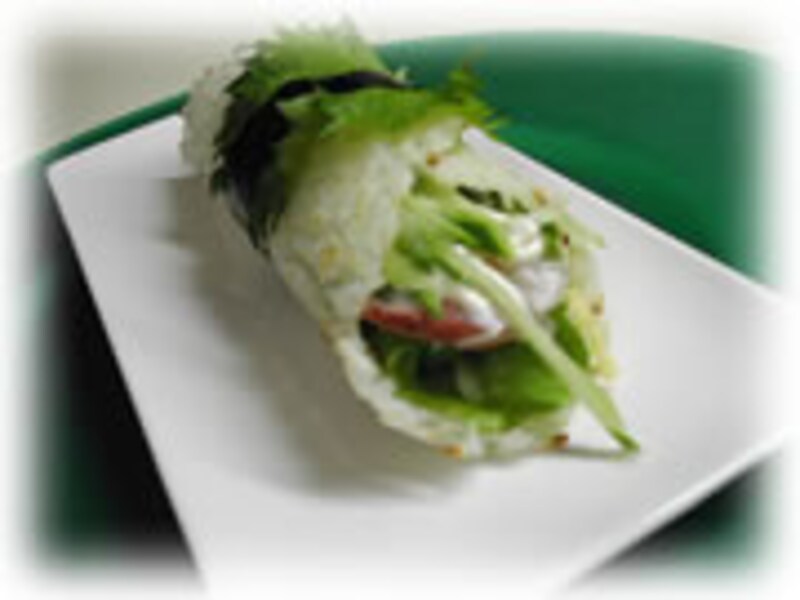 | 春は楽しい仲間達と集まる機会が増える季節ですね。 こんな時は材料を用意しておいて、皆でつくることも楽しいですね。休日なら二人で揃って下準備からはじめて下さい。このお料理は寿司米をうすく伸ばしてオーブンでカリッと焼きあげるだけで、後は野菜やお刺身を飾り付けるだけ・・・好きなようにお楽しみいただけます。 小さな形の寿司米シートを多く用意しておいて、冷蔵庫の残り物を好きなようにトッピングして楽しまれるのも良いですね。 |