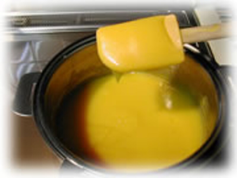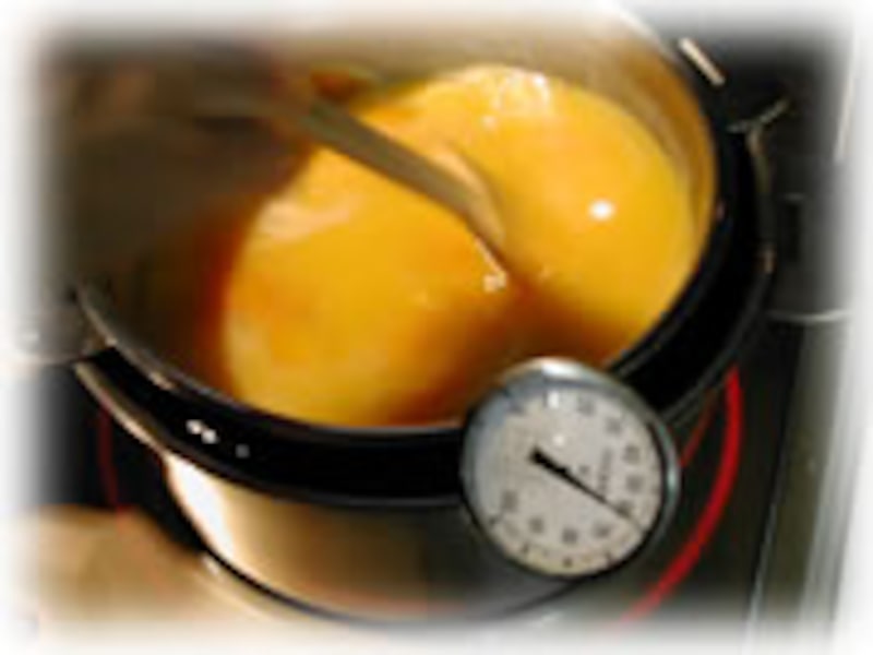 7・再び60度の湯煎にかけ、とろみが付くまで時々かき混ぜ約1時間、煮詰めてでき上がりです。 |