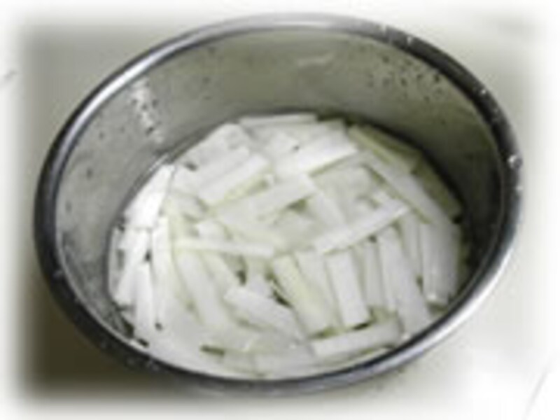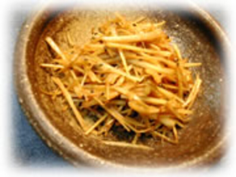 | 皮は細切りにし、酢水にさらしてからごま油でしんなりするまで炒めます。酒、醤油、みりんで味を付けます。最後に七味唐辛子をふりかけます。 | ||
