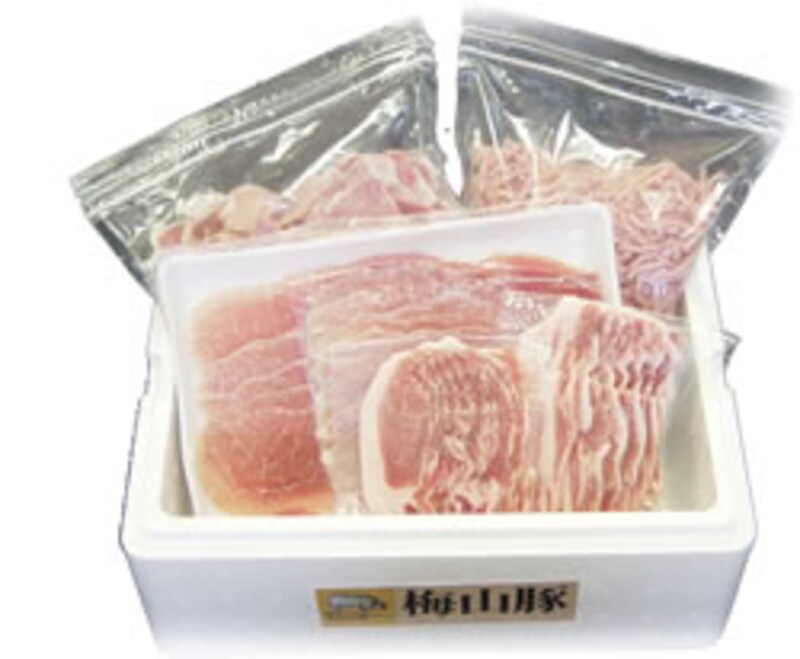 | これがお試しセットです。内容は ○ロース・肩ローススライス200g×2 ○バラスライス/150g×2 3,500円(送料・消費税込み) となっています。 サイトから注文ができます。 実は、サイトの中にはこの梅山豚の可愛い生まれたての画像とともに親豚の画像もありますが、余りの迫力ある姿に、ここではご紹介していません。 親豚の写真を見ると、梅山豚が三蔵法師のお供をする猪八戒のモデルだったというのがうなずけますよ!! |