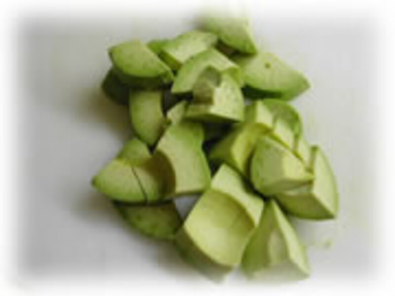 | 1・アボカドは皮と種を取り除き1cm位に切っておきます。 |