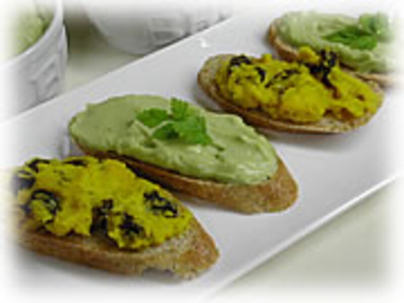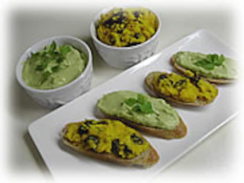 3・やさしい甘さのカボチャディップはお好みで塩、コショウを加えても美味しいです。 | 彩りも爽やかなオープンサンドイッチです。 | |||||||
