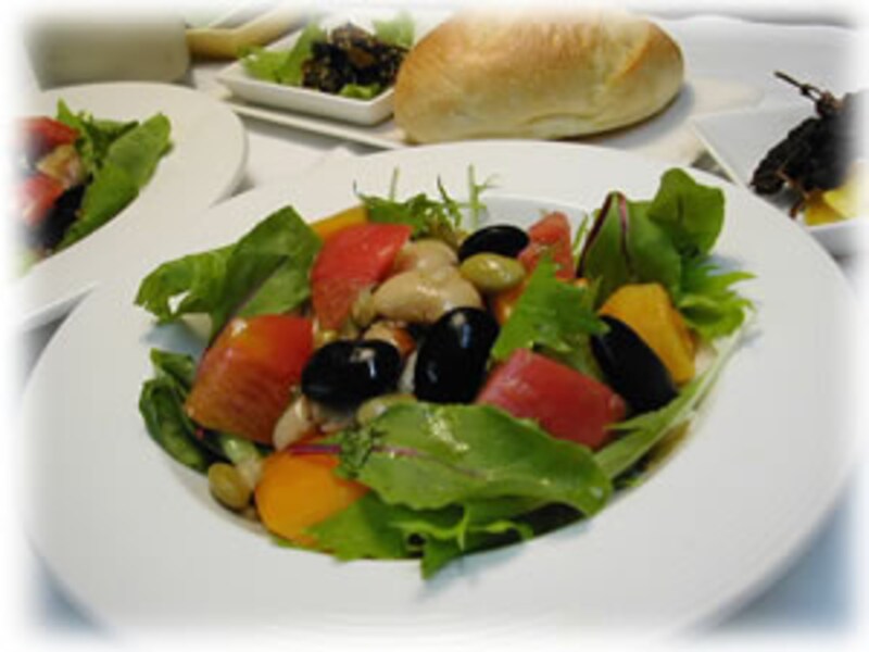 美しい朝食・お豆のサラダ 爽やかな一日をすごすために、 朝食はきちんと取りたいですね。 あわただしい朝の食卓は できるだけ簡単に準備できるレシピにいたしましょう。 栄養豊かなお豆をドレッシングで漬けた常備菜は いろいろ活用できます。 豆のドレッシング漬け 白花豆 50g 青大豆 50g 虎豆 50g 紫花豆 50g 豆はそれぞれ2倍の水に一晩つけておきます。 ドレッシング タマネギ(みじん切りにします) 1/4個 バジルの葉(千切りにします) 5~6枚 サラダ油 10cc 酢 100cc 塩 小さじ1/2 薄口醤油 大さじ2 コショウ 少々 (C)July.2004 Copyright Tamiko Kuroda 12次のページへ