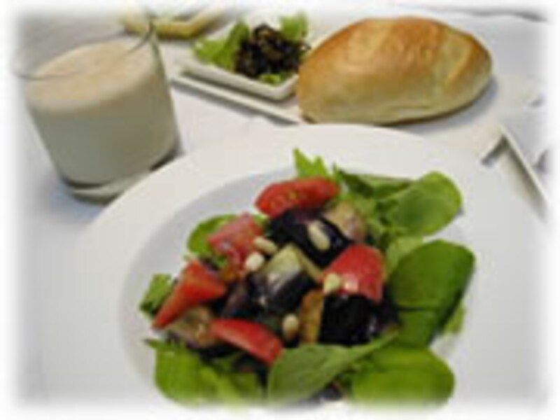 | いろいろな常備菜や保存食を活用して朝食は簡単に準備したいですね♪ 旬の野菜をたっぷりと盛りつけたお豆と揚げナスのサラダに、スクランブルエッグを付け合わせたり、チースと合わせてサンドイッチに。バナナをミキサーで豆乳と合わせたり、そしてヨーグルトを添えたり・・・。さあ!今日も一日を元気にスタートしましょう♪ |