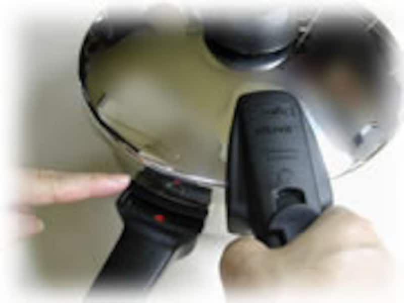 | 材料を鍋に入れたら本体の○印と蓋の取っ手の○印を合わせて、水平に締っている事を確認してから左にスライドさせ密閉します。 |