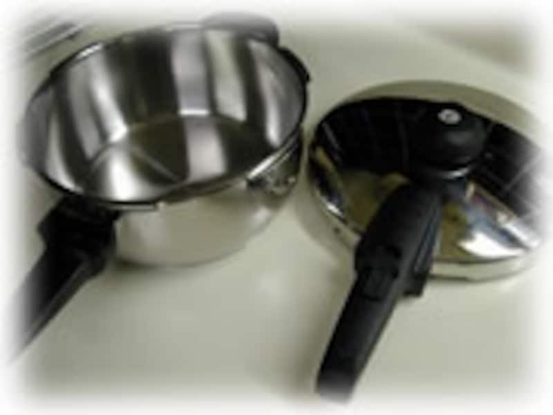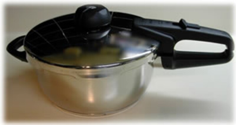 | 圧力鍋は密閉できる蓋で内部に圧力をかけ、高圧、高温で材料を調理します。普通の鍋だと100度以上に温度は上がりませんが、圧力鍋は100度以上の温度になり、高温で調理ができるので、固い材料も短時間で柔らかに調理できるわけです。 |