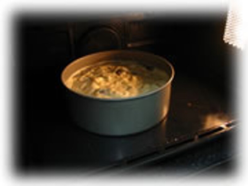 | 7・170度に予熱しておいたオーブンに入れ1時間ほど焼きます。 | 8・焼き上がったらケーキクーラー(アミ棚)にのせ粗熱がとれたら粉糖を振りかけます。 | |