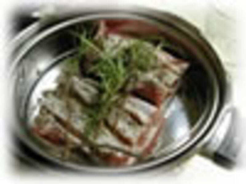 お手軽な手づくりベーコンにチャレンジ!塩漬けはビニール袋に入れて2時間冷蔵庫で、そして次に脱水シートに包み冷蔵庫で肉を脱水するのに半日、そしてお鍋で燻煙40分たらずで香り豊かなベーコンをお楽しみいただけます♪本格的なベーコン作りに比べればずいぶん手間を省いていますが、簡単に作れてチップの香りを楽しめるこのベーコン作りは、始めの一歩としてお試しくださいね。そして慣れてきたらいろんな香辛料やハーブを取り混ぜた本格ベーコンやハム作りにもぜひチャレンジしてください。保存料も着色料も入っていないベーコンの美味しさをぜひお楽しみくださいね♪ |
