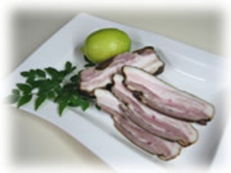 お手軽な手づくりベーコンにチャレンジ!塩漬けはビニール袋に入れて2時間冷蔵庫で、そして次に脱水シートに包み冷蔵庫で肉を脱水するのに半日、そしてお鍋で燻煙40分たらずで香り豊かなベーコンをお楽しみいただけます♪本格的なベーコン作りに比べればずいぶん手間を省いていますが、簡単に作れてチップの香りを楽しめるこのベーコン作りは、始めの一歩としてお試しくださいね。そして慣れてきたらいろんな香辛料やハーブを取り混ぜた本格ベーコンやハム作りにもぜひチャレンジしてください。保存料も着色料も入っていないベーコンの美味しさをぜひお楽しみくださいね♪ |