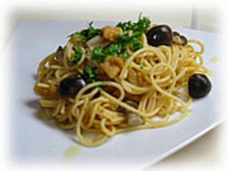 茹でたパスタと和えて、オリーブオイルと薄口醤油で味をととのえます。うにダイヤ・イタリアンも楽しめます♪ | |
