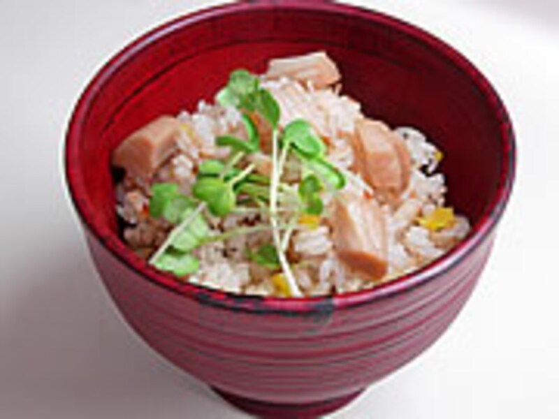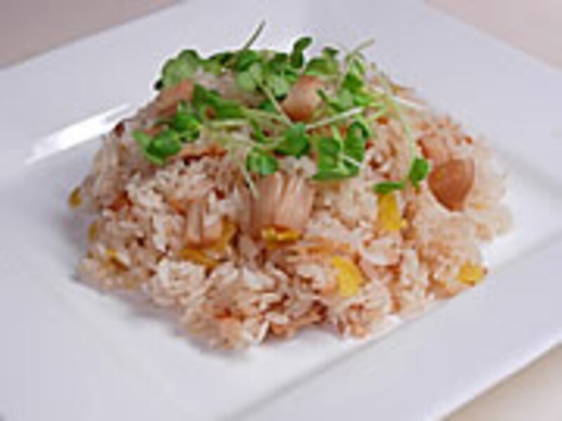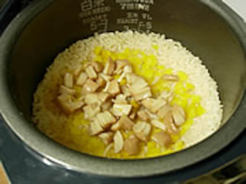 2・炊きあがったら、ほたて貝柱をほぐして上におき10分ほど蒸らした後にご飯を返します。 |