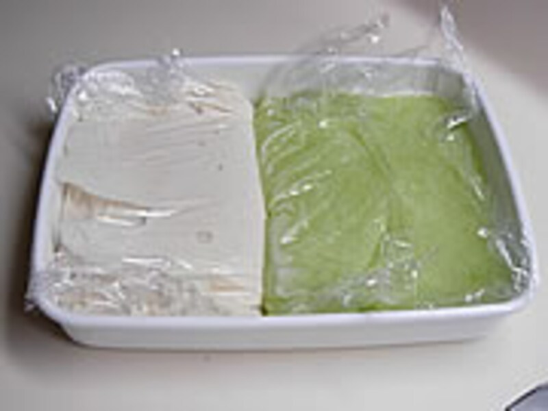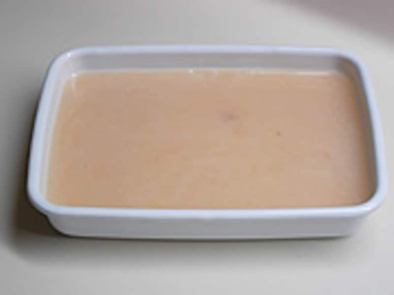 | 冷やし固めるには底が広く浅いバットが早く冷えます。(野田ホーローのホワイトシリーズを使っています) | ||