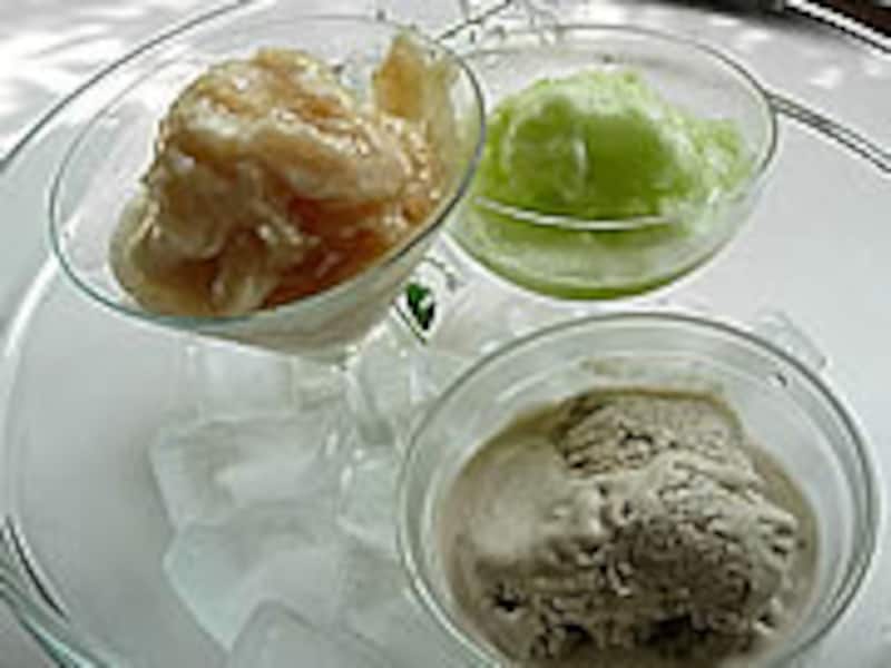 生クリームを加えたバナナソルベは少し濃厚な味わいのシャーベットです。 |