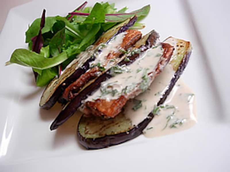 秋なすとサンマの重ね焼き まだまだ残暑きびしい9月 露地物のなすが美味しい季節です。 オリーブオイルでソテーしたなすと 旬のサンマの重ね焼きに ハーブソースをかけた一品は和風フレンチ。 白ワインやビールを添えて・・・。 なすとサンマの重ね焼き(2人分) なす 2個 サンマ 1匹 薄力粉 適量 塩、コショウ 少々 オリーブオイル 大さじ1 ハーブソース バジル 5~6枚 プレーンヨーグルト 大さじ3 マヨネーズ 大さじ1 バルサミコ酢 小さじ1 塩、コショウ 少々 醤油 小さじ1 粒マスタード 小さじ1 (C)Sep.2005 Copyright Tamiko Kuroda 12次のページへ