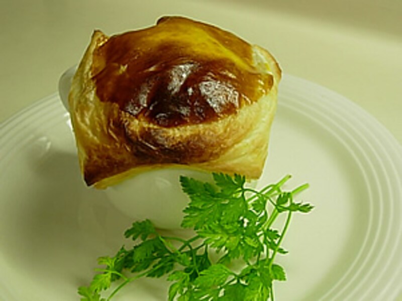 パイ包みのオニオンスープ 木の葉が舞い散る季節には温かいスープが一番! パイシートで包みオーブンで焼いたオニオンスープ。 サクッとしたパイと玉ねぎの甘さが 冷えきった体を温めてくれます♪ パイ包みのオニオンスープ(2人分) 玉ねぎ(薄切り) 100g ニンニク(みじん切り) 1片 人参(さいのめ切り) 30g セロリ(薄切り) 40g ベーコン(さいのめ切り) 20g バター 10g エメンタールチーズなどのとろけるチーズ 適量 塩、コショウ 少々 水 50cc コンソメスープの素 1個 冷凍パイシート 1枚 溶き卵 少々 (C)Nov.2005 Copyright Tamiko Kuroda 12次のページへ