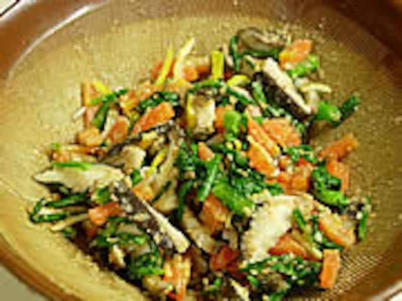 おせち料理にもう一品! 柚子釜 おせち料理、いつもの定番おせちにもう一品。 柚子を器に見立てた柚子釜 春菊、生シイタケ、人参の胡麻和えを詰めました。 柚子の薫りも楽しめるお正月らしいおせち料理をどうぞ♪ 柚子釜 ゆず 5個 生シイタケ 50g 春菊 50g 人参 50g 柚子の皮 1/2個 練り胡麻 大さじ2 柚子のしぼり汁 小さじ1 薄口醤油 小さじ1 砂糖 小さじ1 1・柚子はきれいに洗い上1/4は蓋に使います。下はスプーンなどで中身をくり抜きます。くり抜いた実は絞って和え物に使います。(鍋物、サラダにも使ってください) 2・和え物のシイタケ、春菊、人参は茹でて水気を切り、それぞれ細く切ります、柚子の皮は白いワタをそぎ取り千切りにします。すり胡麻に調味料を合わせておきます。 3・すり胡麻によく水気を絞った野菜を和えます。 4・くり抜いた柚子に胡麻和えを詰めます。 野菜の胡麻和えはやさしい味わいです。 また柚子釜の中身はイクラや酢みそ和えなどにアレンジできますのでいろいろとお楽しみください♪ ☆手づくりでむかえるおせち料理 簡単おせちのいろいろ「黒豆、栗きんとん、黄菊の酢の物、小くわいのカラ揚げ、田作り」大和芋のサーモンとコハダ巻き」 もどうぞご覧ください。 (C)Dec.2005 Copyright Tamiko Kuroda 【編集部おすすめの購入サイト】Amazonで人気レシピの書籍をチェック!楽天市場で人気レシピの書籍をチェック!※記事内容は執筆時点のものです。最新の内容をご確認ください。※衛生面および保存状態に起因して食中毒や体調不良を引き起こす場合があります。必ず清潔な状態で、正しい方法で行い、なるべく早めにお召し上がりください。また、持ち運びの際は保存方法に注意してください。