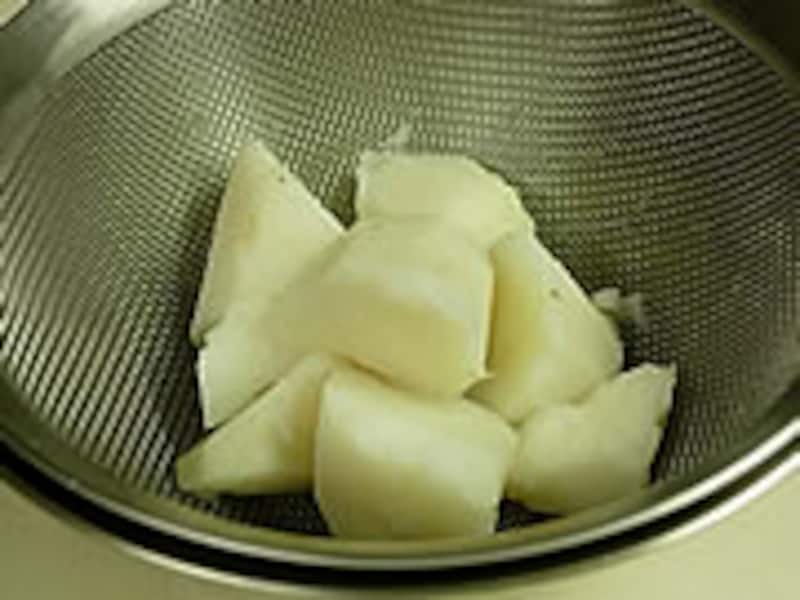 | 1・大和芋は皮をむき乱切りにして蒸しておきます。 |