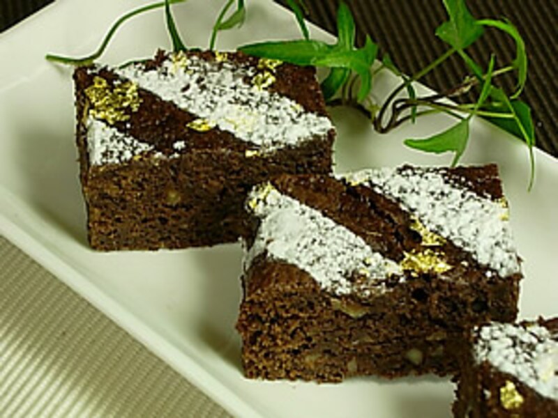 ~“本命”に贈りたい、バレンタインレシピ~ センスで勝負、大人のブラウニー もうすぐバレンタインディ! 本命のあの人には、やっぱり手作りを贈りたい♪ 少しがんばって大人を感じさせるブラウニーを・・・。 しっとりした焼き上がりが自慢の ブランディ-風味のブラウニーに ゴージャスに粉糖と金箔でオシャレして 大人の味わいを! ブランディ-風味のブラウニー(18cm×18cm) スイートチョコ(カカオ分55.7%) 200g バター 80g 牛乳 70cc グラニュー糖 70g 全卵 2個 薄力粉 70g ベーキングパウダー 小さじ1 クルミ 50g カシューナッツ 50g ブランディ- 50cc 粉糖・金箔 少々 (C)Jan.2006 Copyright Tamiko Kuroda 12次のページへ
