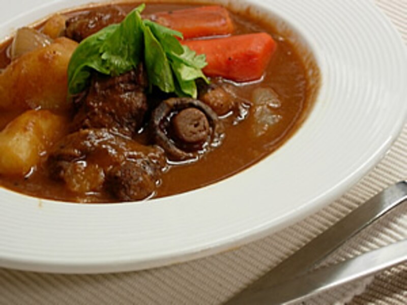牛肉の秘めた美味しさ・ビーフシチュー 牛肉の美味しさを味わうには ゆっくりと時間をかけて・・・ 煮込み料理が一番です! やわらかく仕上がった手づくりのビーフシチューは 極上の味をお約束いたします♪ ビーフシチュー(4人分) 牛バラ肉 400g 玉ねぎ 200g じゃがいも 300g ニンジン 150g ブラウンマッシュルーム 10個 ブランディ 大さじ1 赤ワイン 50cc トマトピューレ 100cc コンソメスープの素 2個 水 1200cc 塩、コショウ 適量 パプリカパウダー 小さじ2 バター 大さじ3 小麦粉 大さじ2 ブーケガルニ- 1束 製菓用スイートチョコレート 20g (C)Jan.2006 Copyright Tamiko Kuroda 12次のページへ