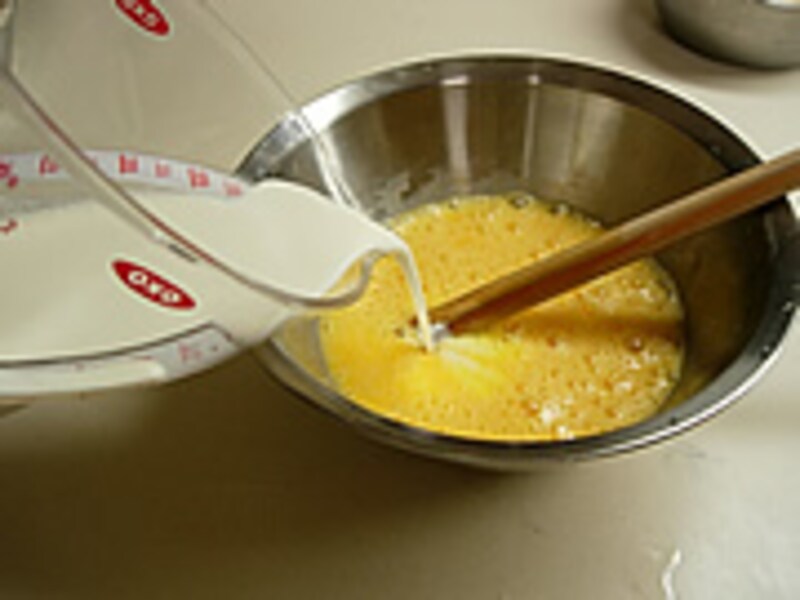4・卵はよく溶きほぐしてから生クリームを加えて混ぜ合わせます。 | |
