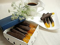 4:オレンジピールにチョコレートでコーティング。濃いめのコーヒやワインにも楽しんでいただけます。市販のドライフルーツを使っても手軽に楽しめます♪