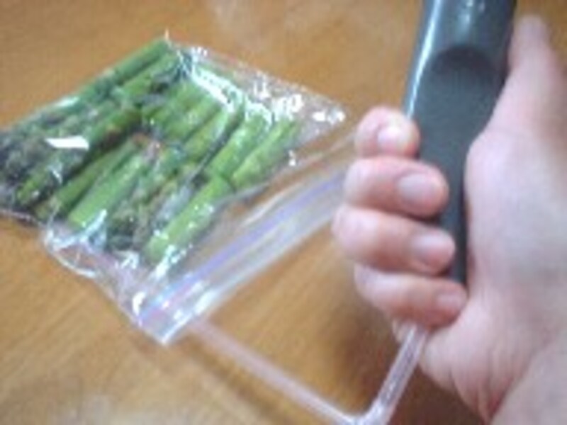 ![]() 保存袋の中の空気を抜く時は、掃除機を使うと簡単にできます。 掃除機の口に空気が入らないようにストローを当て、もう片方を保存袋の中に入れて空気を吸い出します。 しっかりと空気を抜くのがポイントです。 |