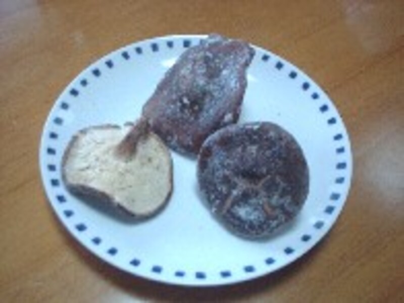 ![]() 冷凍した椎茸です。 きのこはそのまま冷凍できるので便利ですよ。 |