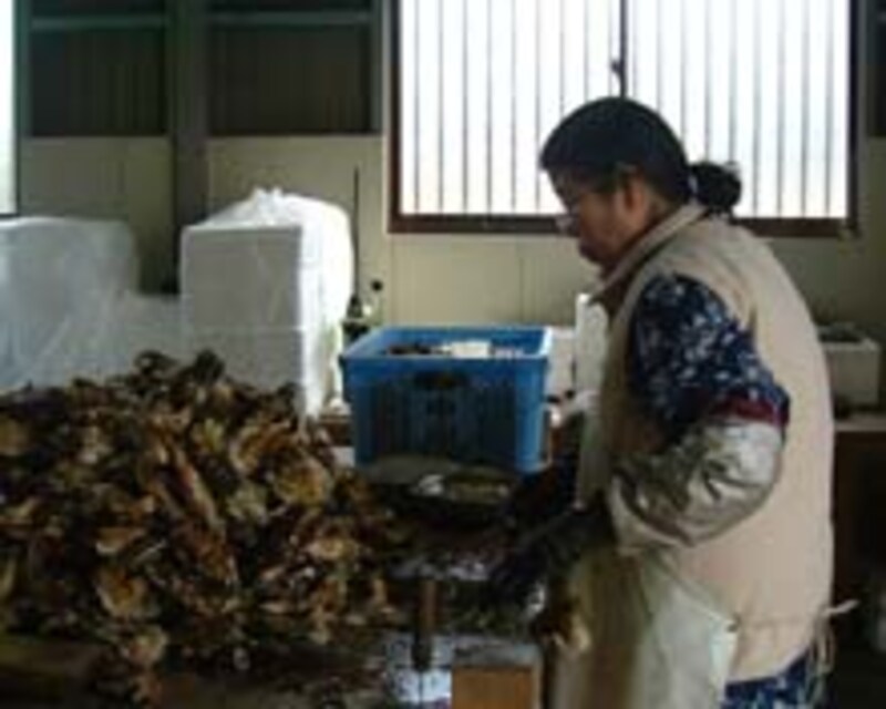 | 中山かき養殖場の作業風景。潮の香りがいっぱい |