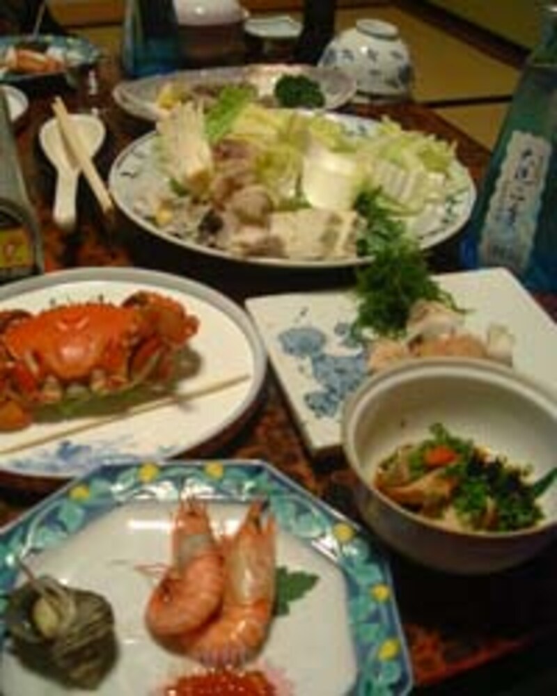 明治初期から続く老舗の割烹旅館。食事は地物にこだわった海鮮料理が評判。アンコウ鍋コースは、やさしい味わいの鍋、フォアグラのようなアン肝や共酢もついて、かなりお得。温泉ではないのが残念だが、朝夕部屋食で、ペットOK(条件あり)。