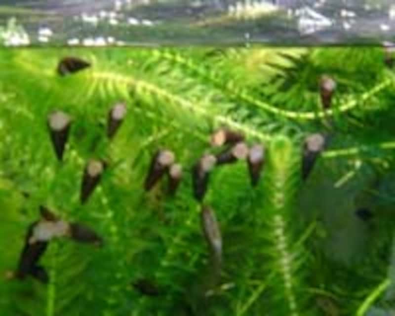 | ホタルの幼虫のエサのなるカワニナ。川辺に生息する巻き貝。 |