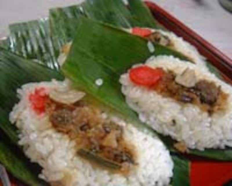 | おばちゃんお手製の笹ずしも旨い。日持ちがするのでお土産にいい。 |