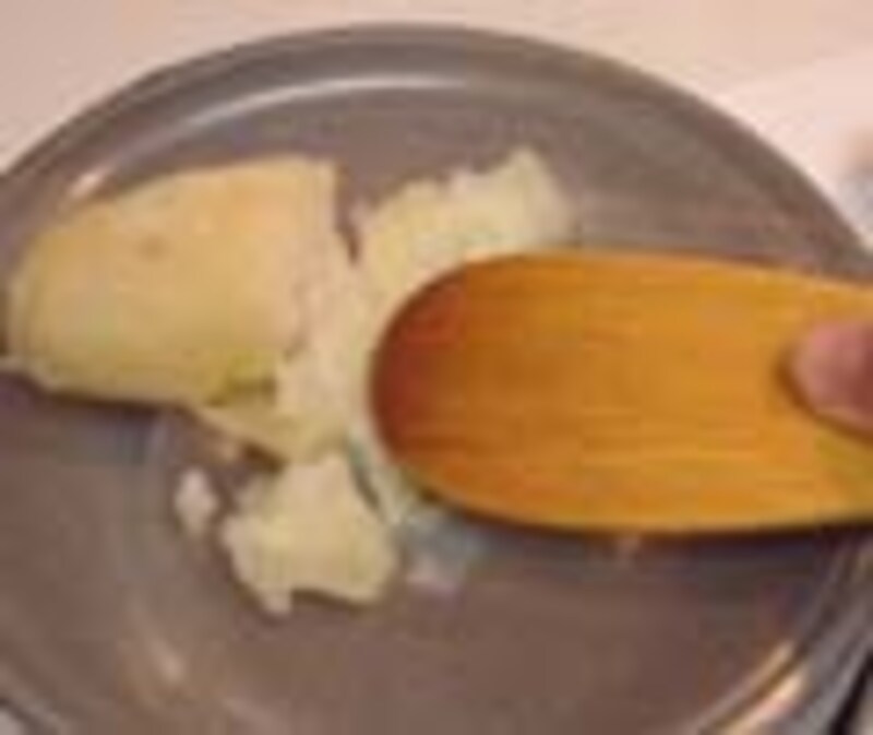 裏ごしにせず全体をざっとつぶしてもかまわないが、裏ごしにするととてもキメの細かいマッシュポテトに仕上がり絶品。裏ごしは手間と力が必要だが男の腕なら簡単だ。