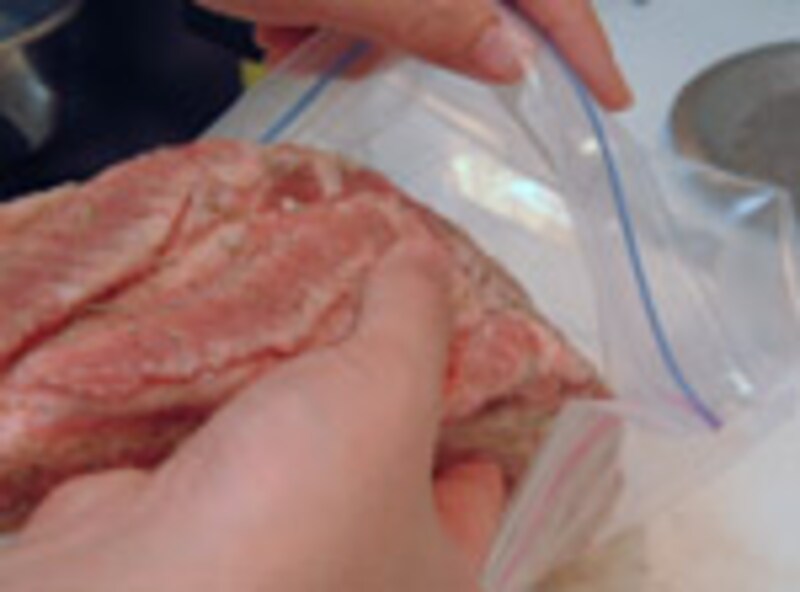そうしたら、ジプロックに入れて、できるだけ空気を抜いてしっかりと密閉する。