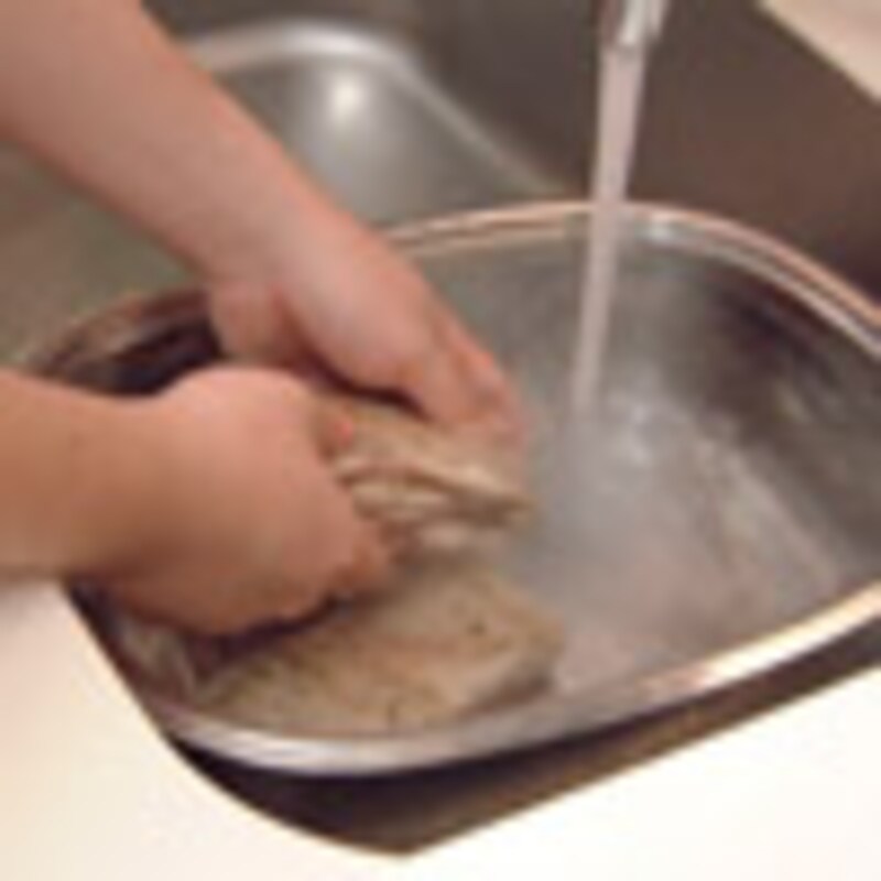 とりあえず流水で表面をざっと洗ったら、洗いおけなどに水を張って浸す。