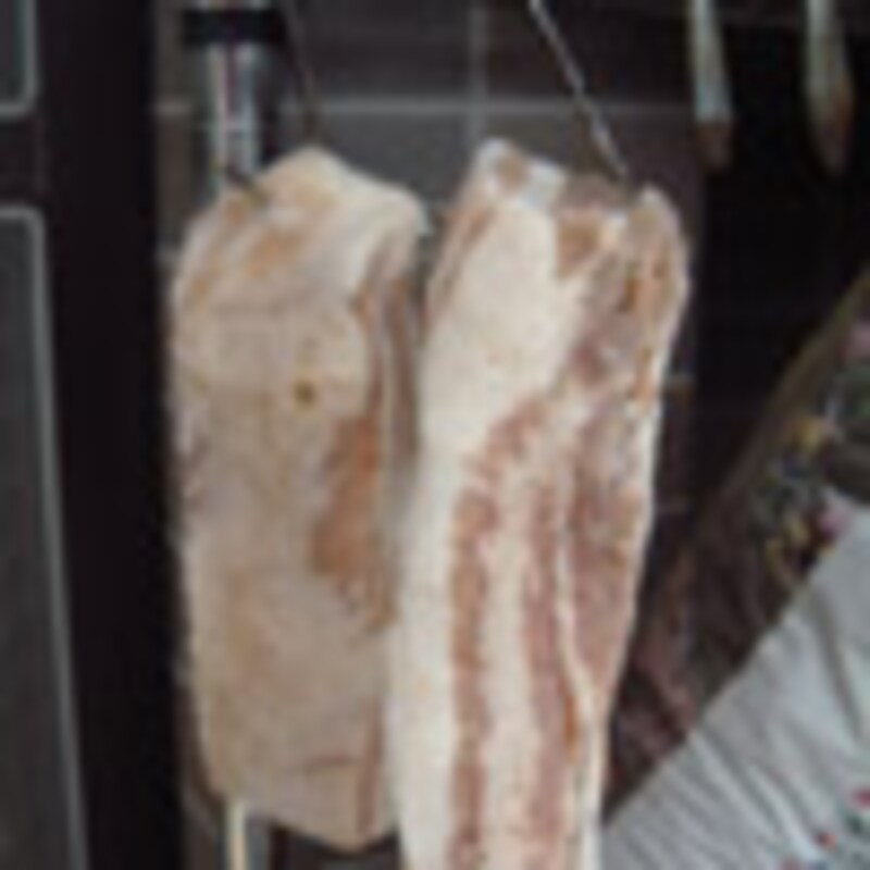 「いやーお待たせ、お待たせ」と、訳のわからん声をかけながら、塩漬けしておいたバラ肉を冷蔵庫から取り出す。