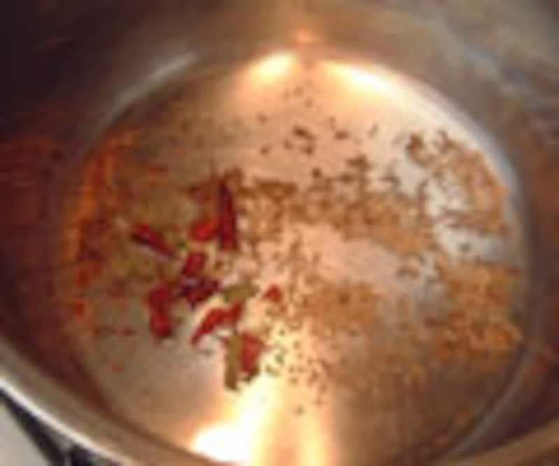 ・クミンシード、マスタードシード、ベイリーフ、赤唐辛子
