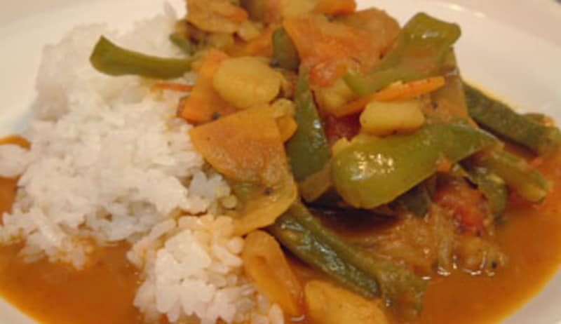 カレーも、手間をかけて作るものが多いが、今回のカレーは、ざく切りした野菜を、次から次へと鍋に放り込んで蒸し煮にするだけの簡単なもの。