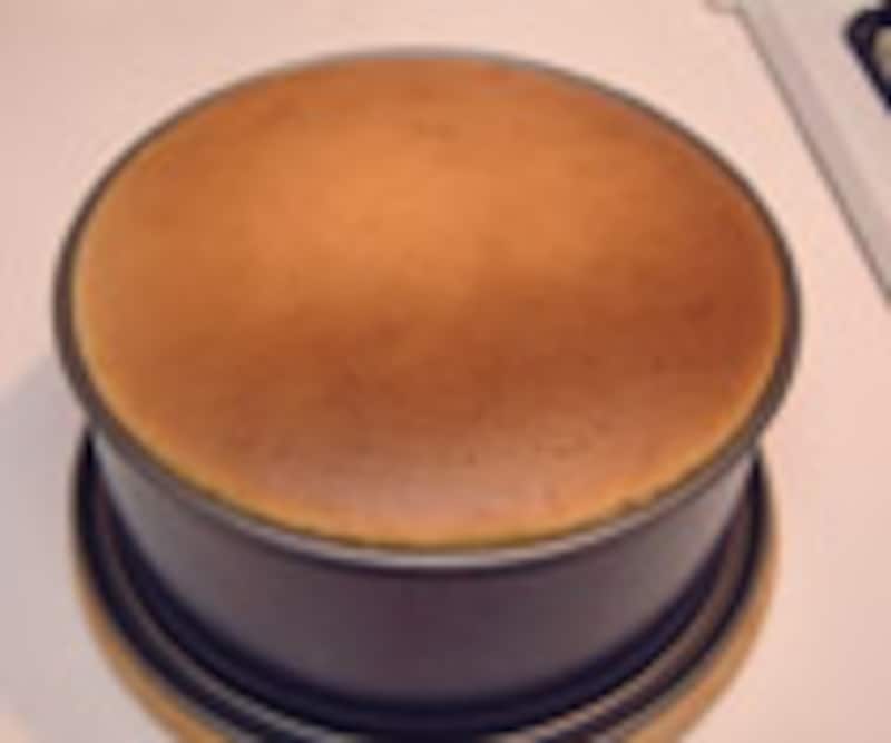 12.焼きあがったら、オーブンから出して粗熱をとり、ケーキ型に入れたままラップなどをかけて冷蔵庫でしっかりと冷やして完成。