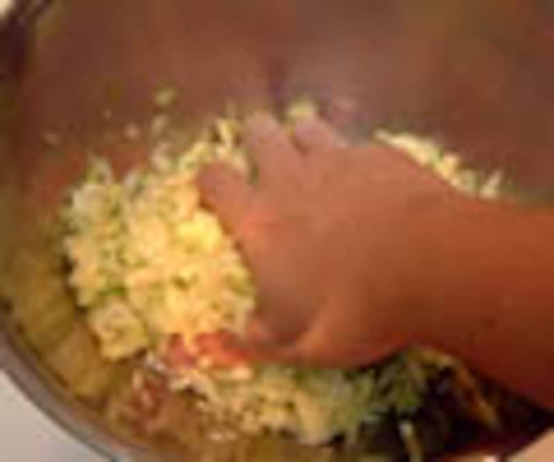 しっかりと粘りを出さないと、仕上がりがボソボソして美味しくない。