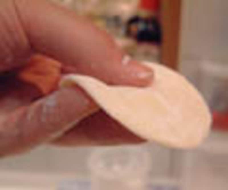 円盤状になった皮の中央部分を残して、フチの部分を軽く伸ばすようにすれば十分。