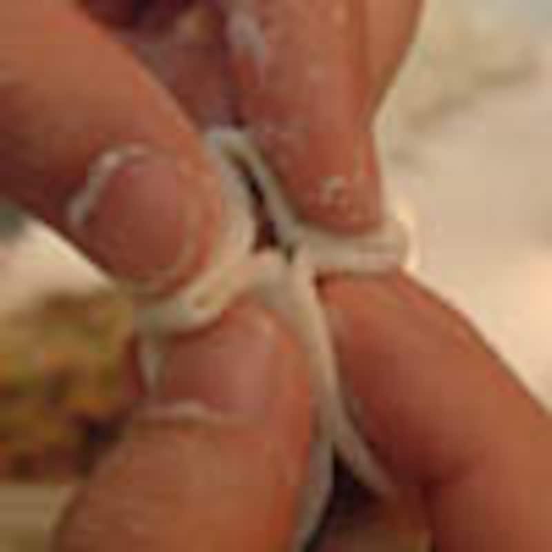 ・最後に、両手の親指と人差し指で、ギュッと口を閉じるようにあわせて出来上がり。