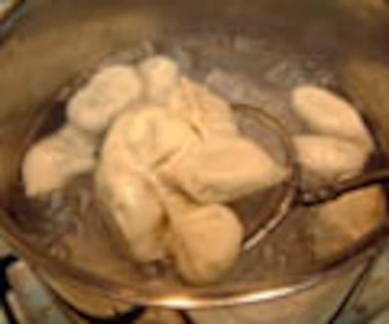 餃子に対してたっぷりのお湯にしないと、表面がどろっとした仕上がりになってしまう。なべが小さければ、何回かにわけて茹でよう。