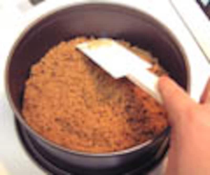加熱しすぎてはいけないが、あまり硬いままだとこのあと混ぜていくのが非常に大変。 電子レンジによって出力が違うので、最初は途中で触って確認しながら何度かレンジにかけるようにするといい。