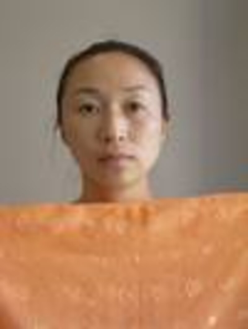 武 ちょっとこちらで鏡を見ててくださいね。お顔に色を当てますよ。――最初は薄いピンクです。きれいな色でしょう? さあ、じっと見ていてくださいね。次は黄みのあるコーラルピンクです。どうですか? 何か変わりましたか?