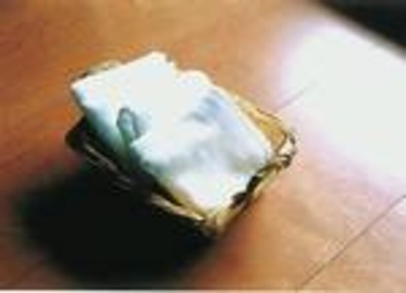 ボロ布ではどうも‥‥という方は、小さいガーゼハンカチを。ガイド家でも、子供が小さいときの食べこぼし対策に常備していました。赤ちゃんのいるお宅ならゼッタイあるものですし、洗えば何度でも使え、きちんとたたんでカゴに入れておけば見た目もまずまずなので、お客様にも使っていただけます。