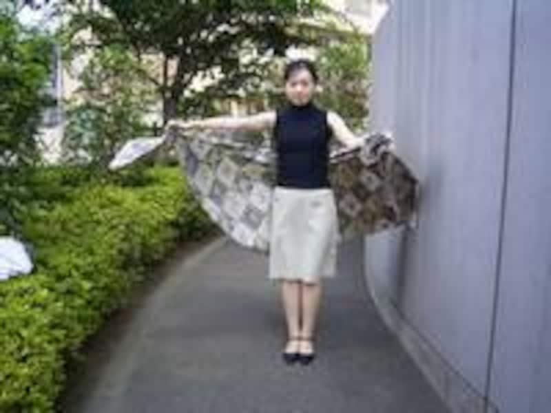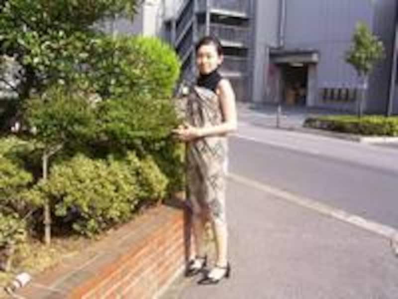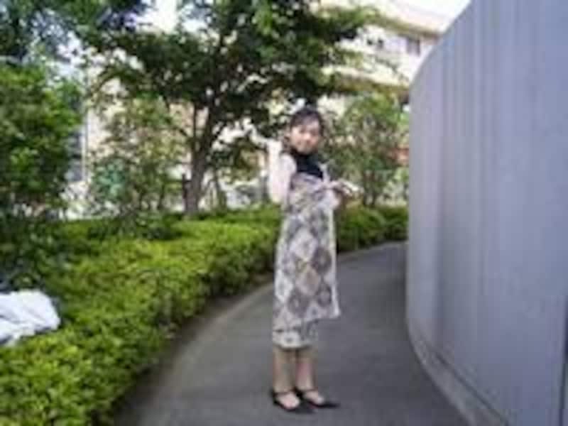 | ベルトもボタンも不要、布一枚でできるリゾートドレス(モデル:「ファミリー・ライフスタイル」プロデューサーN嬢) |