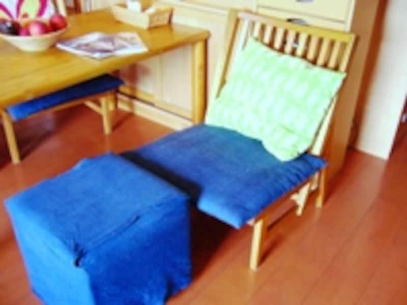 | 座面の広い椅子+スツールで、一人用ソファみたいに |