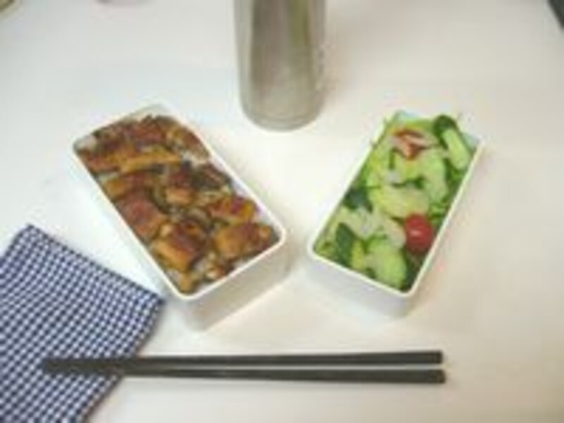 我が家のお弁当は、次第に品数を減らし、今では3品あればヨシという基準に落ち着きました。主菜(焼き魚、から揚げなど)、副菜1(青菜系を必ず)、副菜2(卵、芋、豆など)がそれ。家のお昼だってこんなもんでしょ? もっとシンプルなのは「どんぶり弁当」で、「ご飯に具(きじ焼き、きざみうなぎ、卵とじ系など)を載せて、隅っこに漬物+生野菜」という構成。けっこうボリュームあります。