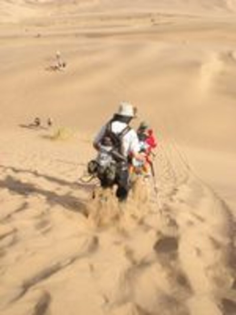 | 2009年ナミビア。前年のチリアタカマでボランティアとして働いていたディアナとのゴール。とても明るい性格のお姉さんで、レース中も何度も励まされた(峯澤)。(c)m.minezawa |
